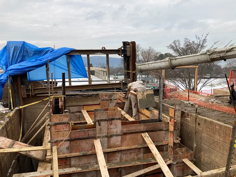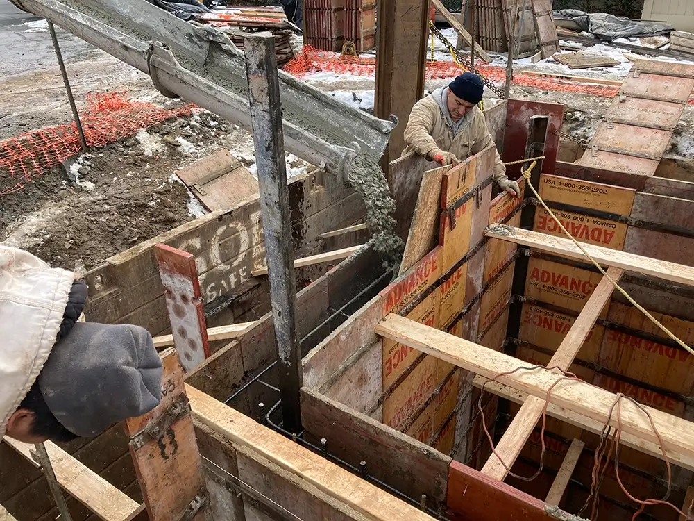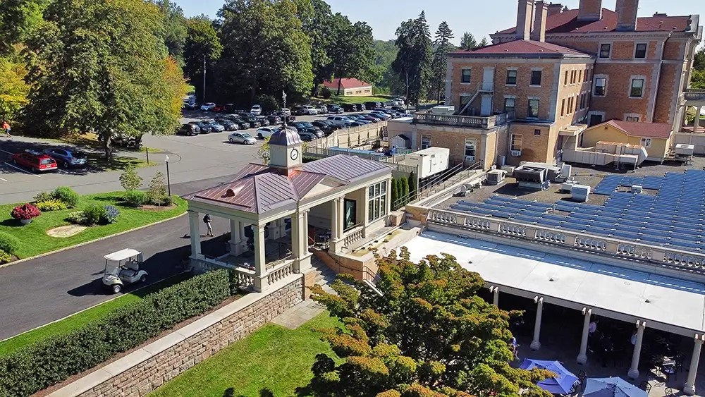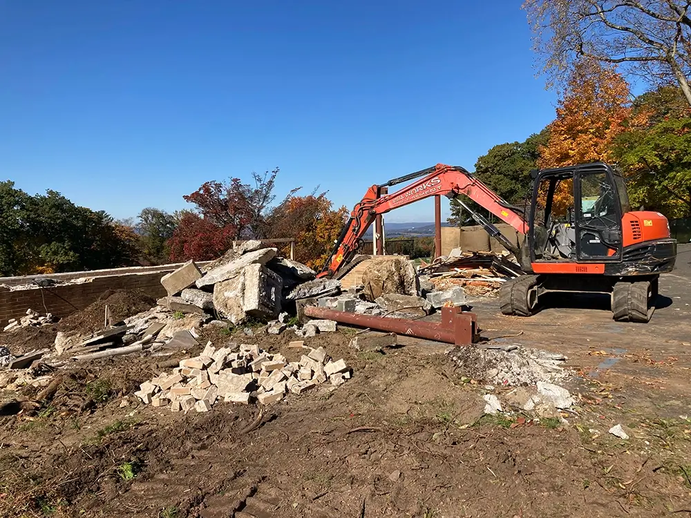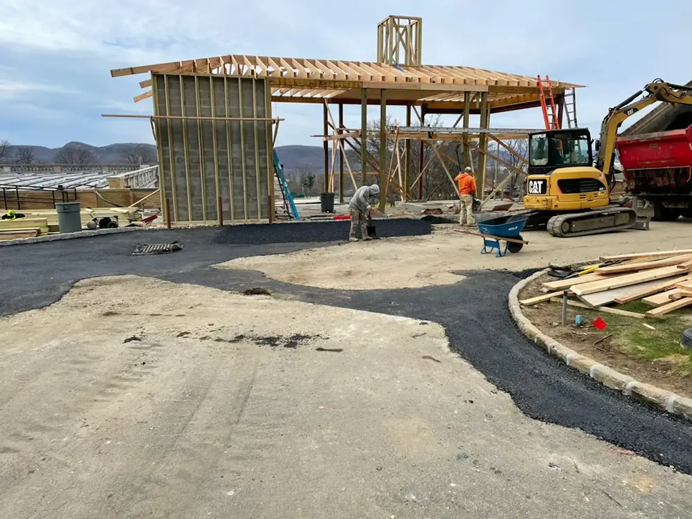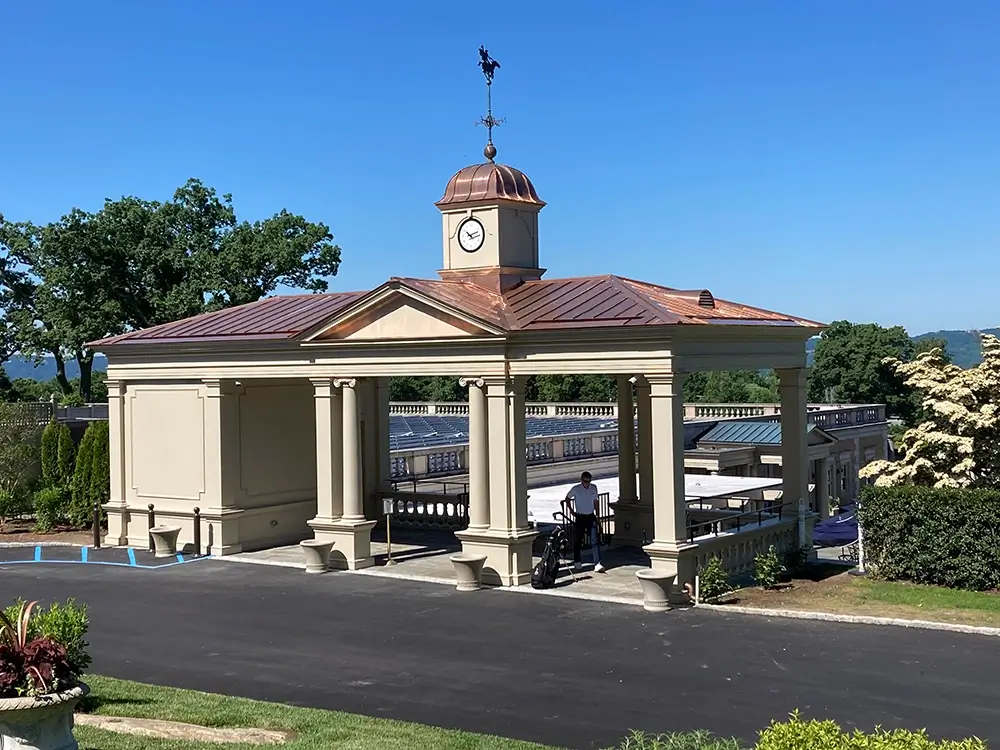 The project scope included a 20’ deep excavation for an elevator shaft and the construction of a small building for the elevator and a Pavilion where guests could drop their golf bags and valet their vehicles. The small building housed a new ADA compliant elevator to bring members and guests from the parking lot level down to the grill room and patio levels and avoid the stairs.